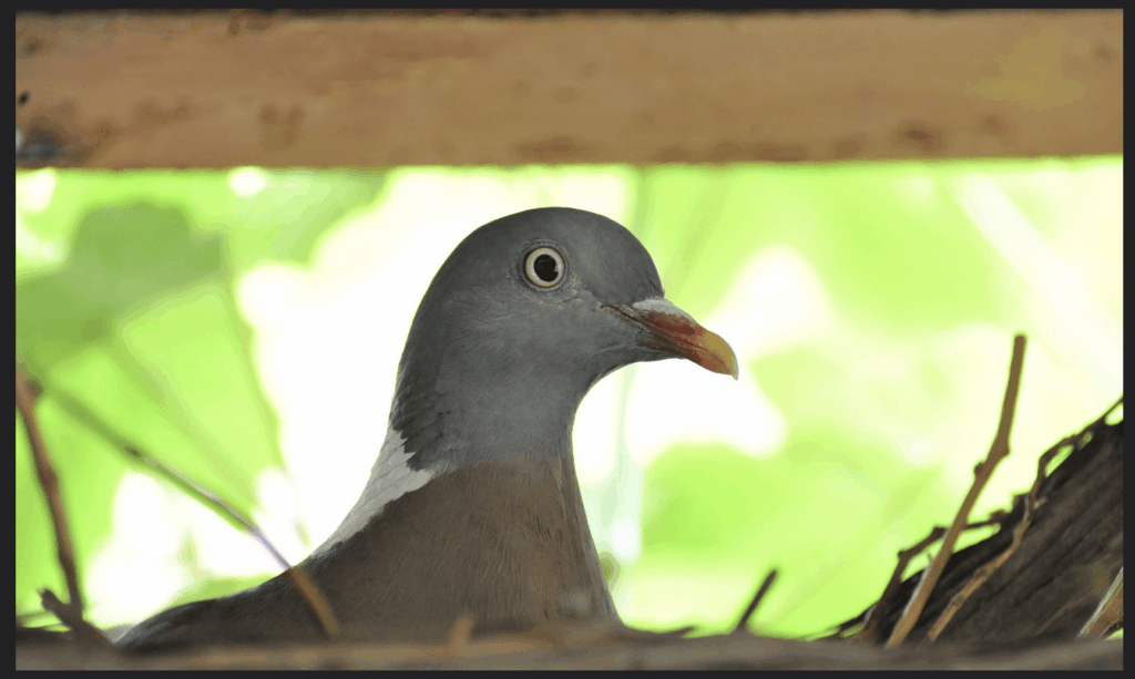In the Summer of 2009, a pair of pigeons decided to have a family in our carport. This is the female, sitting placidly in the nest and paying no attention to her landlords.