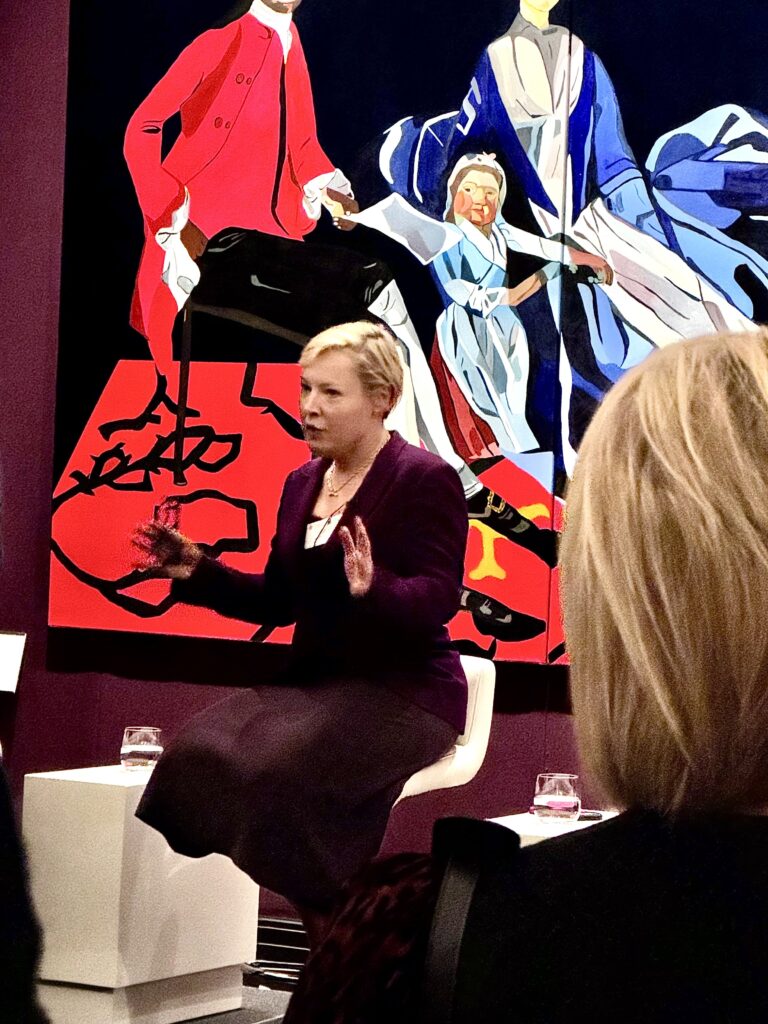 Gillian Tett, anthropologist, FT columnist and now Provost of King’s, holding forth last week at the launch in the Fitzwilliam Museum in Cambridge of the new Bennett School of Public Policy. I meant to check out the striking artwork in the background — which seemed so out of place in the Fitz, but had dash off before I was able to get to it. Sigh.