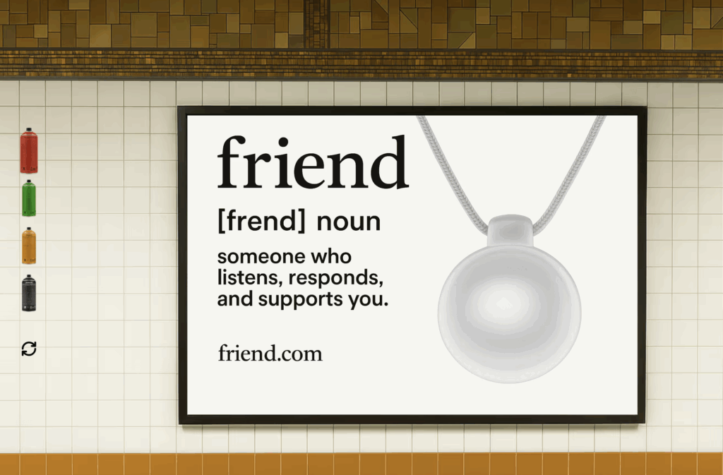 New York City ad campaign from the AI startup Friend, which sells a little pendant device a user is supposed to wear around their neck and talk to and attract the ire of passersby with. The company plastered the NYC subway system with ads last month, and those ads were rapidly and thoroughly vandalized in what can only be read as an outpouring of rage at not just the Friend product, which they correctly identified as a malign portable surveillance device, but at commercial AI in general.